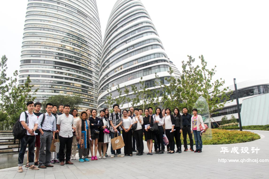 考察團(tuán)隨后抵達(dá)了由著名建筑師扎哈·哈迪德(Zaha Hadid)擔(dān)綱總設(shè)計師的“首都印象建筑”——望京SOHO?疾熘,學(xué)員對望京SOHO項目的設(shè)計手法及細(xì)節(jié)、如何解決多專業(yè)交叉問題、如何運用流線型設(shè)計手法、如何將景觀細(xì)節(jié)與建筑相融合等諸多設(shè)計難點進(jìn)行了交流。
